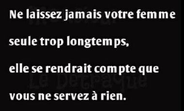 Une femme à son mari qui vient tout juste de rentrer nuitamment et qui sent l’alcool à 5 mètres: – Tu peux m’expliquer à quoi ça rime de rentrer à la maison à moitié bourré ? Le mari: – C’est pas de ma faute, j’avais plus d’argent…